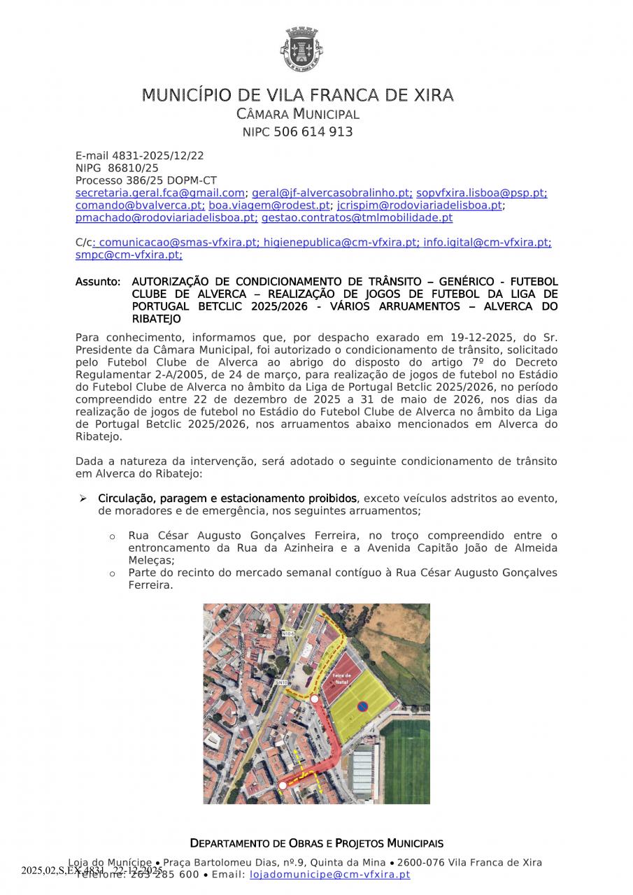 Condicionamento de Trânsito – Realização de Jogos de Futebol da Liga de Portugal Betclic – 2025/2026