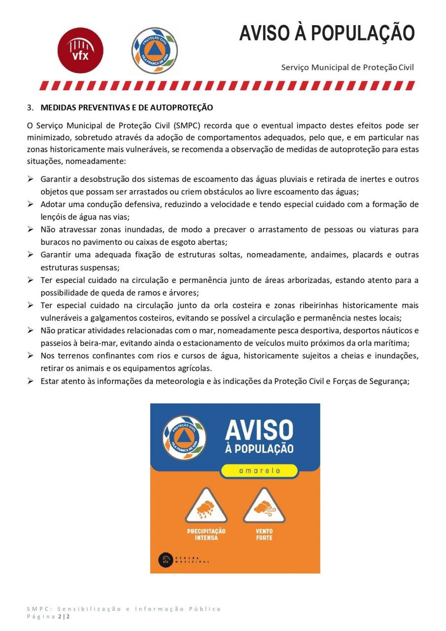 Aviso à População - Condições Meteorológicas Adversas – Precipitação e Vento – de 22 a 24 Janeiro
